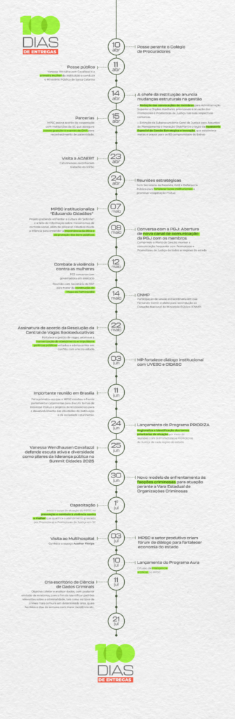“Cada passo dado nesses primeiros 100 dias reflete o nosso compromisso com a transformação institucional. Estamos construindo um Ministério Público mais próximo, eficiente e inovador. Seguiremos avançando com coragem, escuta ativa e foco em resultados que promovam mudanças de impacto na vida das pessoas.”