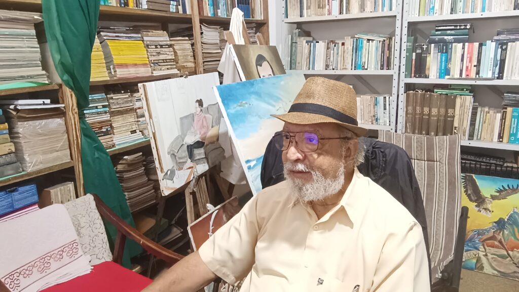 Natural de Florianópolis, Eleutério Nicolau da Conceição foi professor na Universidade Federal de Santa Catarina (UFSC). Trabalhou no Departamento de Física até que, com mais tempo trazido pela aposentadoria, retomou o antigo interesse em unir desenho e história: tem publicado episódios da história de Santa Catarina ilustrados em quadrinhos. Além da Guerra do Contestado, ele usa o dom de desenhar para recriar em quadrinhos a Páscoa Sangrenta. Eleutério abriu seu ateliê para uma entrevista e disponibilizou seu valioso acervo para ilustrar nossa reportagem.