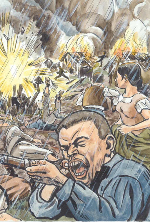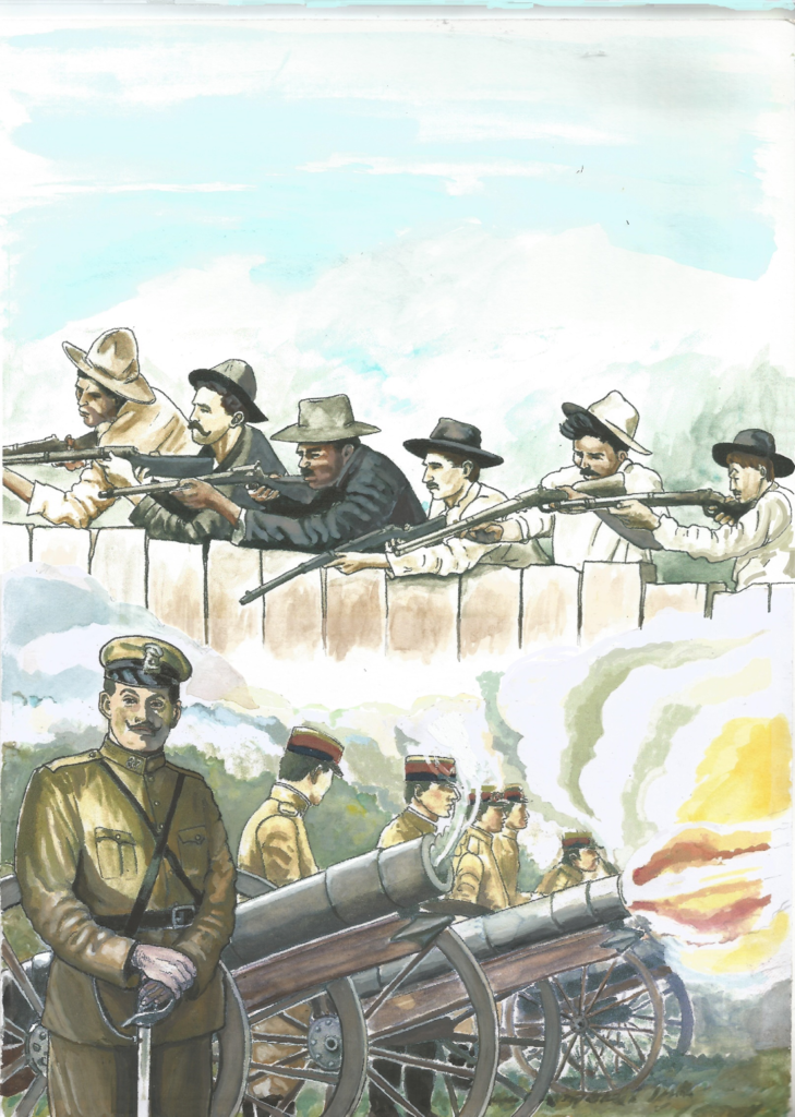 O que chama a atenção é a disparidade das armas utilizadas nos combates. Imagens da época, como do fotógrafo sueco Claro Gustavo Jansson e que inspiram os quadrinhos de Eleutério, mostram a diferença.