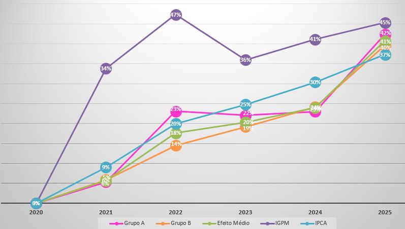Já em 2024, o reajuste foi de 0,75% para clientes industriais e de 4,19% para residências, pequenos comércios e consumidores rurais (baixa tensão), resultando em um aumento médio geral foi de 3,02%, com uma inflação de 4,5% no período.