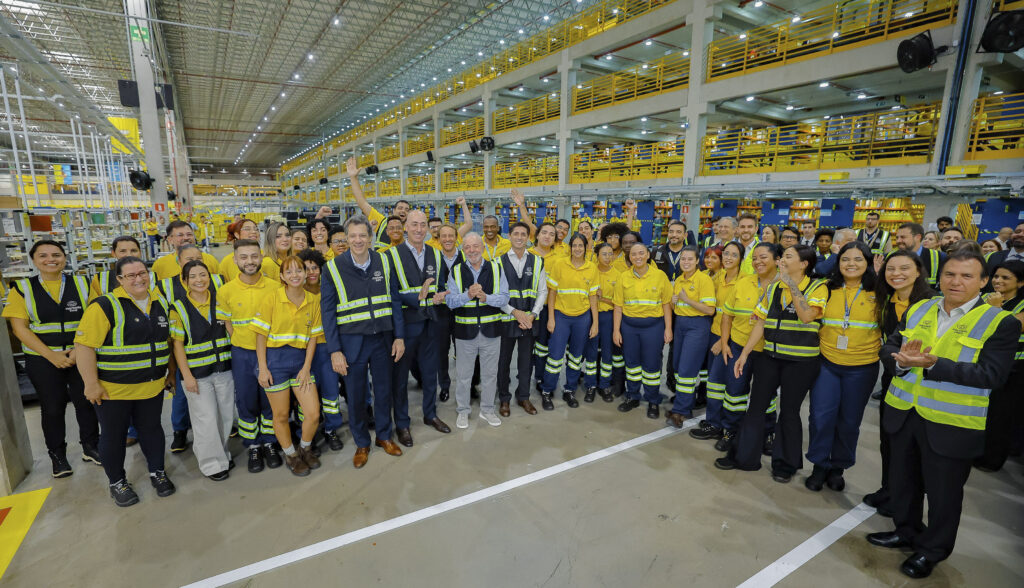 Ao visitar o Centro de Logística do Mercado Livre, Lula abraçou funcionários da empresa e até colocou um pacote na esteira para ser encaminhado para entrega.