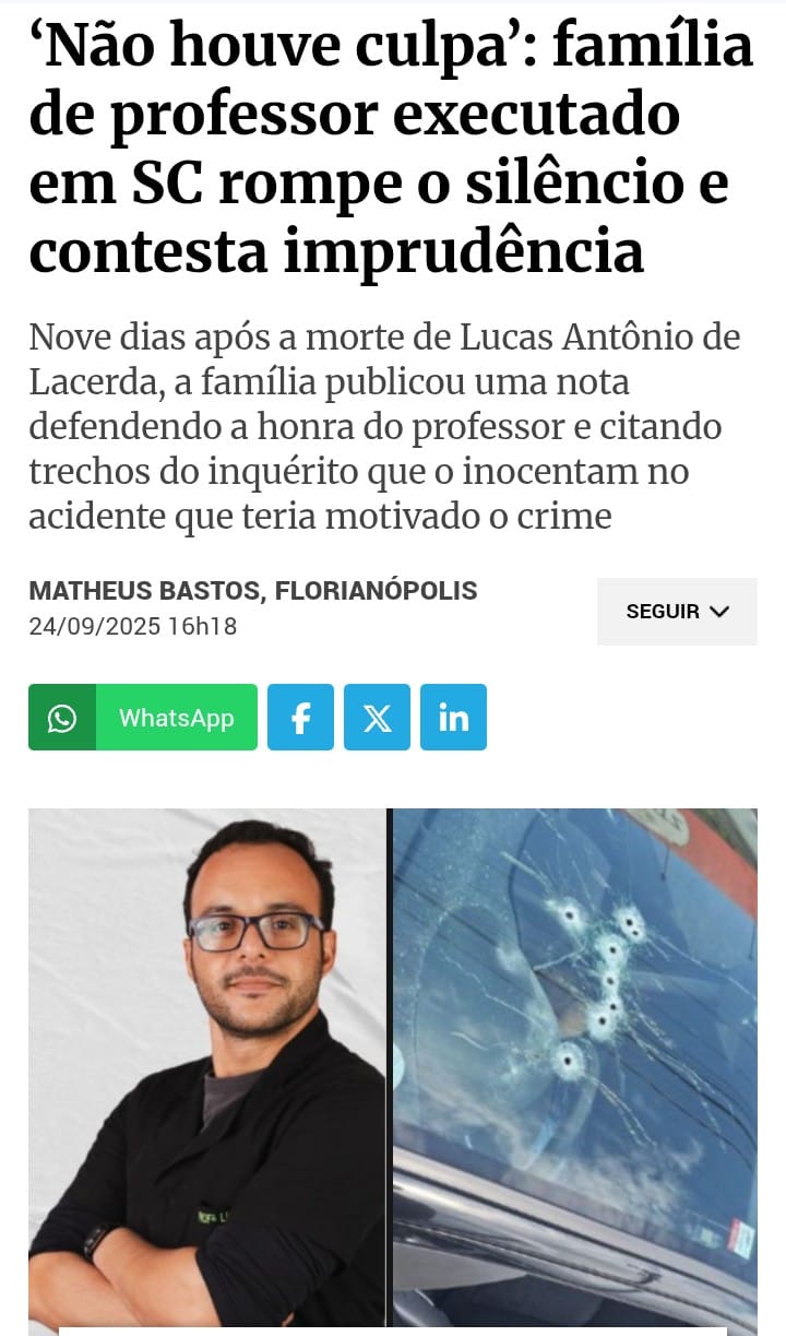Lucas, de 38 anos, que era coordenador e professor de curso pré-vestibular naquele município, morreu após ter sido alvejado por nove tiros, durante a tarde, no bairro Ipiranga. A investigação da Polícia Civil aponta que o professor foi vítima de vingança, por ter atingido um motociclista em alta velocidade, que também morreu, no ano passado. Os suspeitos da morte de Lucas estão presos e devem responder por homicídio qualificado por motivo torpe e por recurso que dificultou a defesa da vítima,