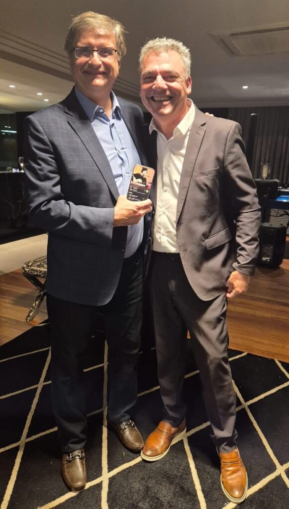 Conhecedor da música brasileira e fã de Luiz Henrique Rosa, o procurador-geral da República, Paulo Gonet, tietou o nosso Luiz Meira em Florianópolis. Os dois conversaram no jantar oferecido pelo publicitário Wilfredo Gomes, na última sexta-feira (8), ao ministro do Supremo Tribunal Federal (STF), Dias Toffoli.