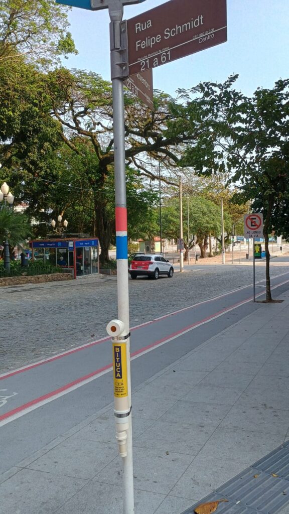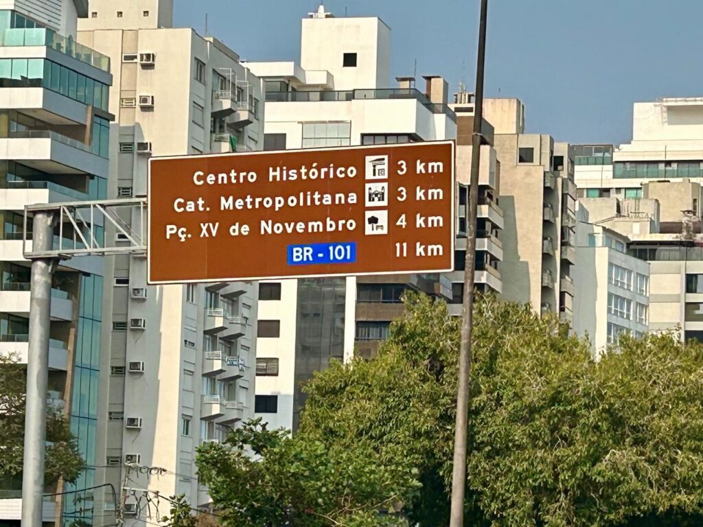 A informação na placa da avenida Beira Mar Norte “muda” o mapa do centro histórico de Florianópolis. Reparem que confunde os visitantes ao colocar a Catedral Metropolitana e a Praça XV a um quilômetro de distância.
