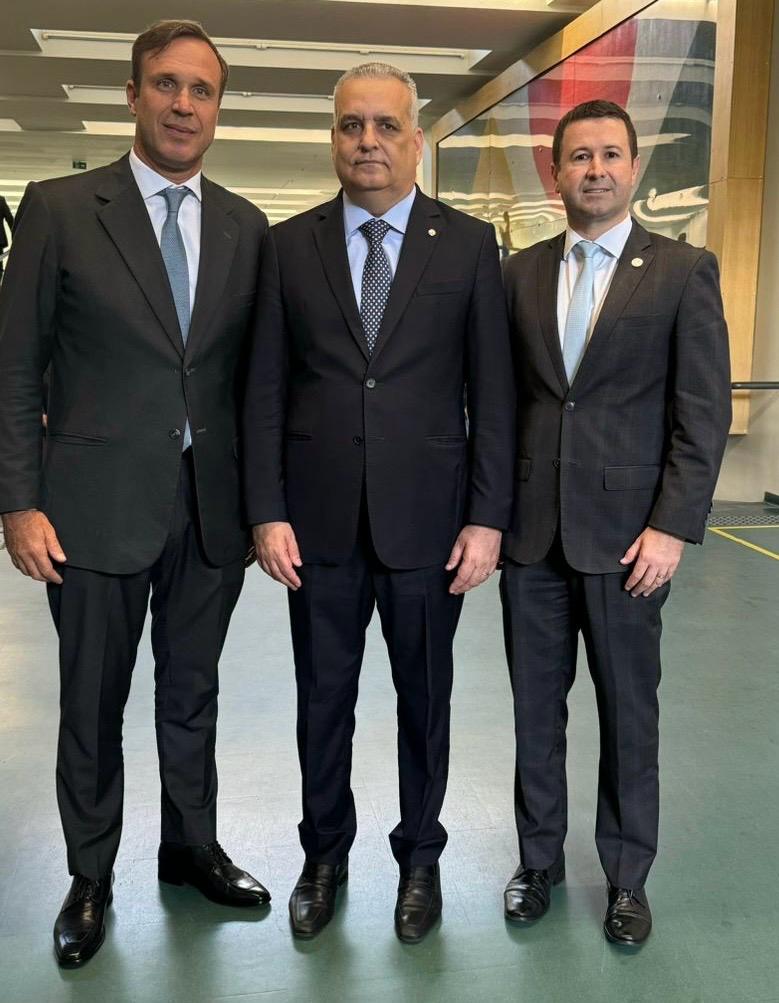 Rafael Horn (E) ao lado do relator da proposta, deputado federal Alfredo Gaspar, e do secretário-adjunto da Comissão Nacional de Legislação, Rafael Piva Neves