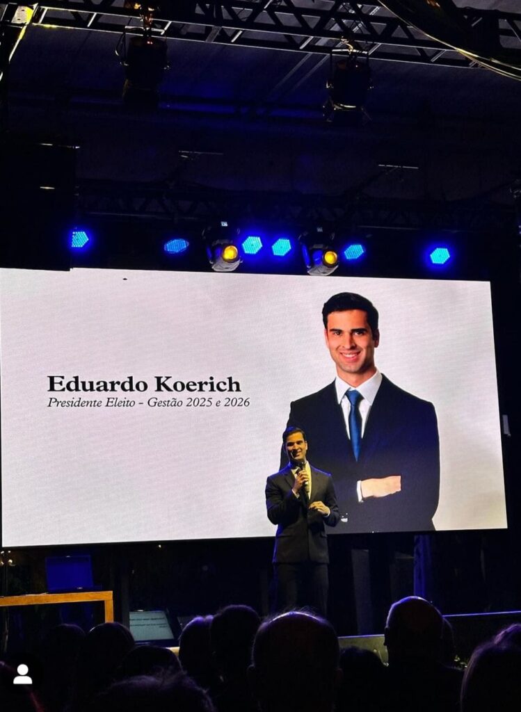 Presidente eleito da CDL Florianópolis (gestão 2025-2026), Eduardo Koerich, 34 anos, foi diplomado no sábado (23), com toda a diretoria. Ele substitui o empresário Júlio Geremias, que foi homenageado na cerimônia. No discurso, Eduardo falou sobre os projetos iniciais – entre eles a qualificação da mão de obra, um dos desafios do varejo – e a importância da parceria com o poder público para fazer da capital uma cidade ainda melhor. No evento, realizado na Alameda Casa Rosa, destacou o que aprendeu dentro da família: “Ninguém nasce grande, ninguém cresce sozinho”. Em entrevista à coluna, o empresário falou sobre os planos à frente da entidade. Foto: divulgação/Apoio Comunicação