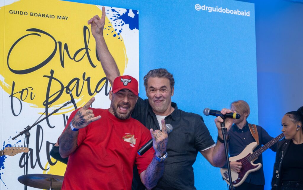 O médico Guido Boabaid May lançou em Florianópolis o livro “Onde foi parar minha alegria?” (Buzz Editora). A obra propõe um olhar sensível sobre saúde mental, depressão e autoconhecimento, unindo literatura e música em uma experiência inédita. Na noite de autógrafos, na Casa Hurbana, Guido fez um pocket show de sua banda com canções inéditas. Foto: Marco Cezar, divulgação