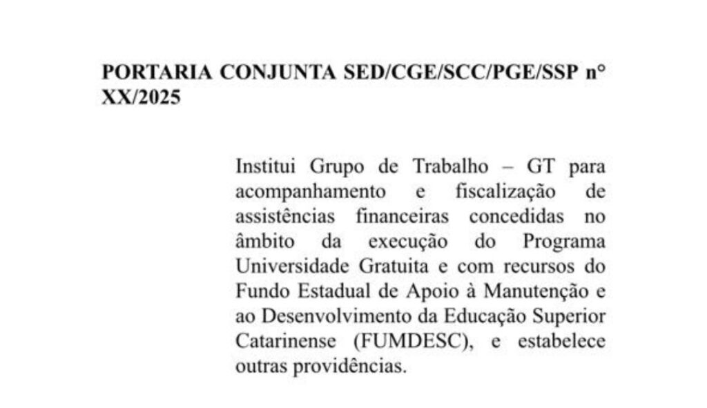 Caberá ao grupo de trabalho “sugerir medidas visando ao aperfeiçoamento da concessão de assistências financeiras no âmbito da execução do programa Universidade Gratuita e do Fumdes”, “recomendar a adoção de providências administrativas preliminares à instauração de tomada de contas especial”.