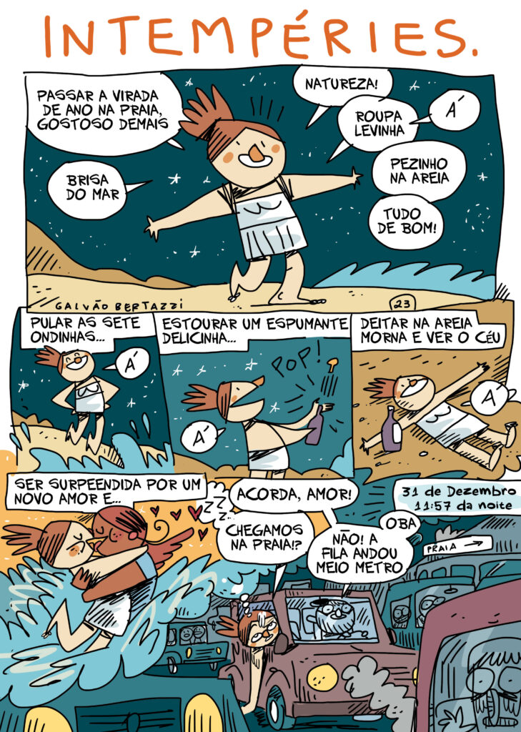 Intempéries é uma série de quadrinhos, lúdica e absurda, sobre o cotidiano.