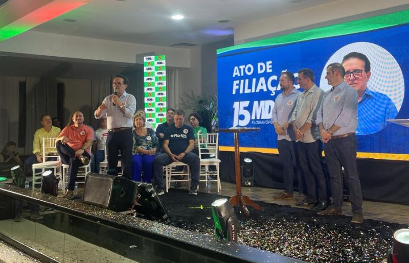 O único não emedebista no palco também faz parte da reconstrução do partido na cidade: o prefeito Topázio Neto (PSD). Ele agradeceu ao partido por ter sido o primeiro a declarar apoio à reeleição, ainda em 2023.