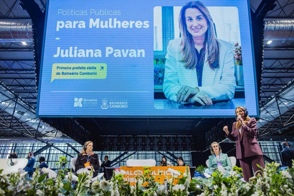 “Melhorar a vida da mulher é melhorar a vida de toda uma comunidade”, afirmou a prefeita de Balneário Camboriú, Juliana Pavan, durante a palestra sobre políticas públicas voltadas para as mulheres, nesta quarta-feira (3), segundo dia do Congresso de Municípios de Santa Catarina (COMAC-SC). Falando sobre as ações voltadas para as mulheres implantadas em sua gestão, destacou a criação de um plano municipal de políticas para mulheres no município e defendeu que a participação da mulher na política é fundamental para defender o que a gente acredita e garantir direitos para as novas gerações.