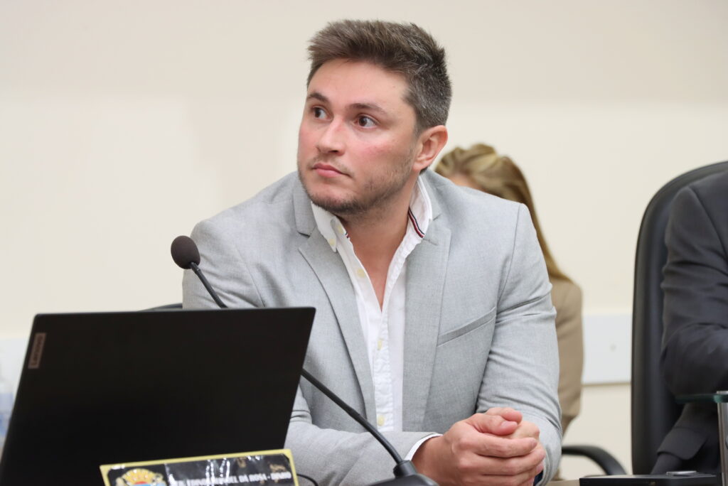Lucas Schweitzer na Câmara de Vereadores de Florianópolis, nesta segunda-feira (13) à tarde. Foto: Édio Hélio Ramos, divulgação, CMF