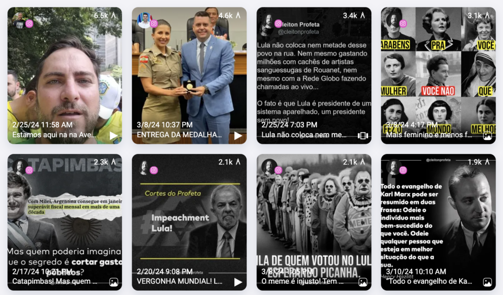 O vereador Cleiton Profeta é o grande lider de engajamento nas redes na maior cidade do Estado com mais de 413 mil engajamentos nos últimos 6 meses, mas esse número merece um olhar mais atento. Ainda que suas redes sejam regulares e produzam bastante conteúdo, o debate é bem disperso a nível regional, e acaba por impactar diversas cidades.