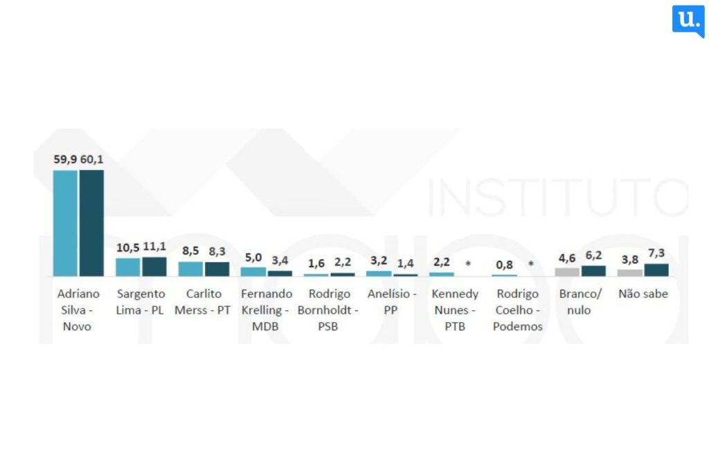 Um segundo bloco de pré-candidatos traz o deputado estadual Fernando Krelling (MDB), com 3,4%, o ex-vice-prefeito Rodrigo Bornholdt (PSB), com 2,2%, e o empresário Anelísio Machado (PP), com 1,4%. O trio está em situação de empate técnico.