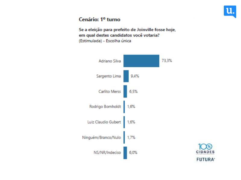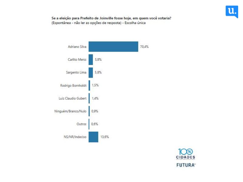 O 100% Cidades pesquisa os cenário eleitoral nos 100 maiores colégios eleitorais do Brasil em parceria com o Futura Inteligência. Nesta segunda rodada de pesquisa em Joinville, foram ouvidos 600 eleitores entre 12 e 16 de setembro. A margem de erro é de quatro pontos percentuais e o índice de confiança é de 95%. A pesquisa foi registrada no TRE-SC: SC-01145/2024.