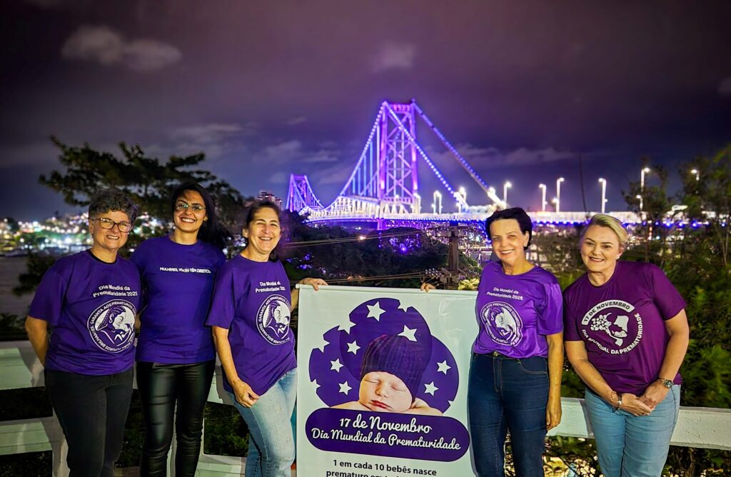 A Ponte Hercílio Luz, cartão-postal de Florianópolis, foi iluminada de roxo na última segunda-feira (17) em alusão ao Dia Mundial da Prematuridade. A ação partiu de solicitação da deputada estadual Luciane Carminatti, que intermediou pedido da professora Zaira Custódio, coordenadora da Campanha Novembro Roxo no estado e vinculada ao Hospital Universitário da UFSC.