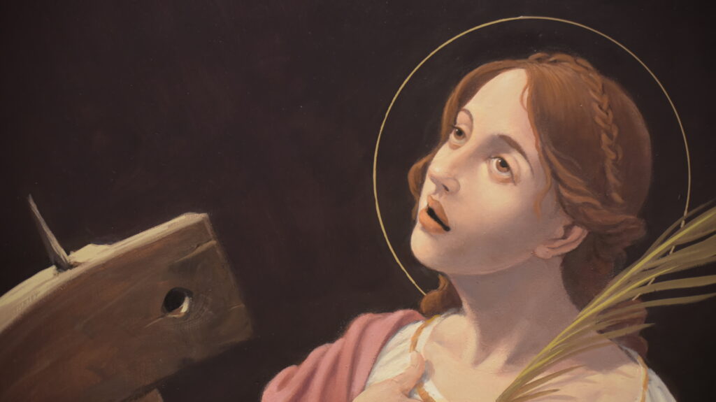 Três obras que integram a exposição Sou Catarina, que encerra neste domingo (23), foram doadas para o acervo do Museu de Arte de Santa Catarina (Masc). A entrega das obras será nesta sexta-feira. Os doadores são Clica Voight, Sara Ramos, Rafael Bornhausen e o casal Myriam Consonni Gomes e Valério Gomes. Na imagem acima, a obra “A jovem Santa Catarina”, óleo sobre madeira de Canato.