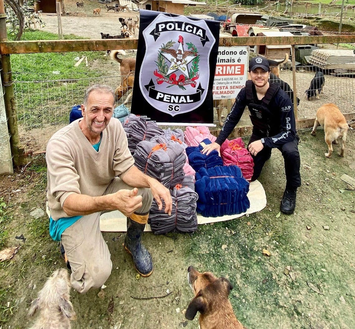 “Recebemos com o coração aquecido a doação de 180 mantas pet por meio do projeto ‘AqueçaPPet’, da Polícia Penal de Santa Catarina. Essa iniciativa linda e solidária chegou em ótima hora: o frio já começou a apertar, e nossos animaizinhos, que sentem (e muito!) as baixas temperaturas, agora terão mais calor, conforto e carinho.” A frase estava postada na rede social da ONG 4 Patas. O projeto “AqueçaPPet”, desenvolvido pela Polícia Penal de Santa Catarina, por meio da Penitenciária Industrial de Blumenau, mobiliza internos, servidores e empresas parceiras em uma corrente de solidariedade, que une ressocialização e cuidado com os animais. A ação já beneficiou seis organizações de proteção animal. A produção é feita por cinco internos da unidade prisional, com apoio da equipe do Setor Laboral e da Coordenação de Administração Prisional.O material utilizado, retalhos de tecido, linhas e agulhas, são doados por empresas da região, incluindo o Presídio de Itajaí, que contribui com sobras têxteis reaproveitadas.