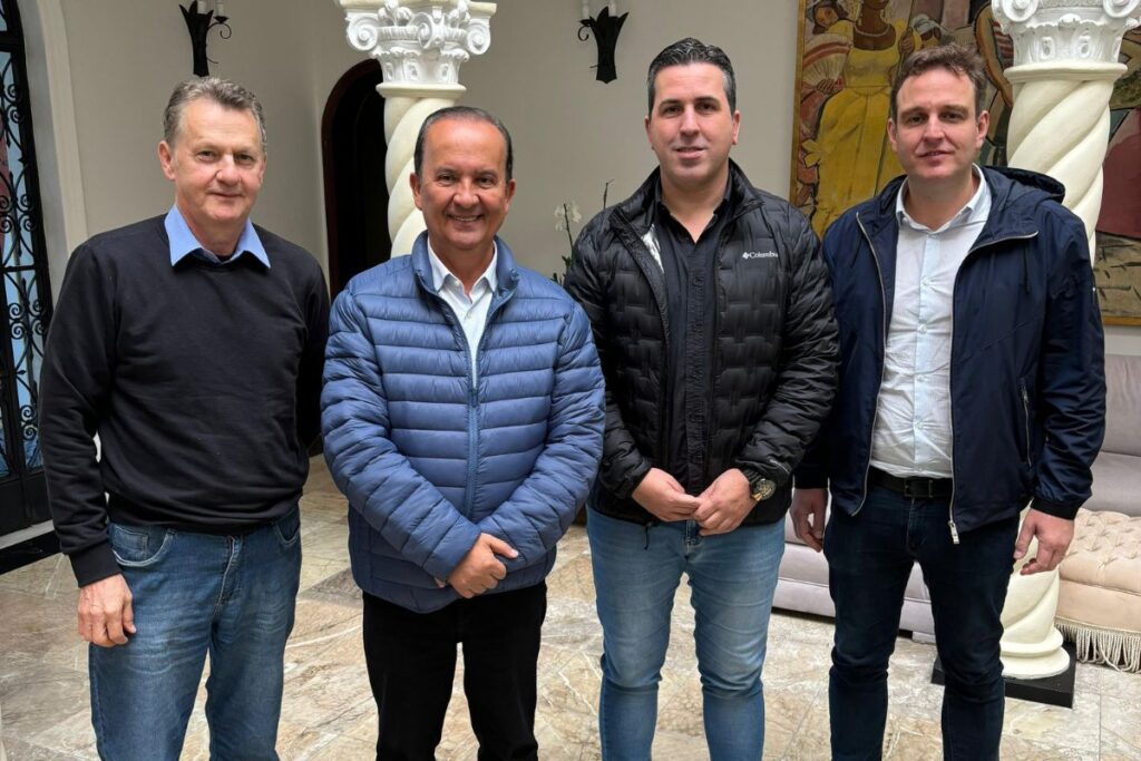Foto: Após acerto da aliança entre PL e Republicanos em Criciúma, o governador Jorginho Mello (PL) recebeu Acélio Casagrande, Jefferson Monteiro e Ricardo Guidi na Casa d’Agronômica.