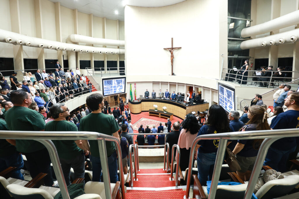A Alesc realizou na noite desta quarta-feira (10), no Plenário Deputado Osni Régis, a sessão especial para entrega do Certificado de Responsabilidade Social de Santa Catarina 2025. Durante a solenidade, também foram divulgados os vencedores do Troféu Responsabilidade Social – Destaque SC, entregue às empresas e organizações sem fins lucrativos que se destacaram em ações sociais, ambientais e de governança, voltadas ao bem-estar da comunidade.