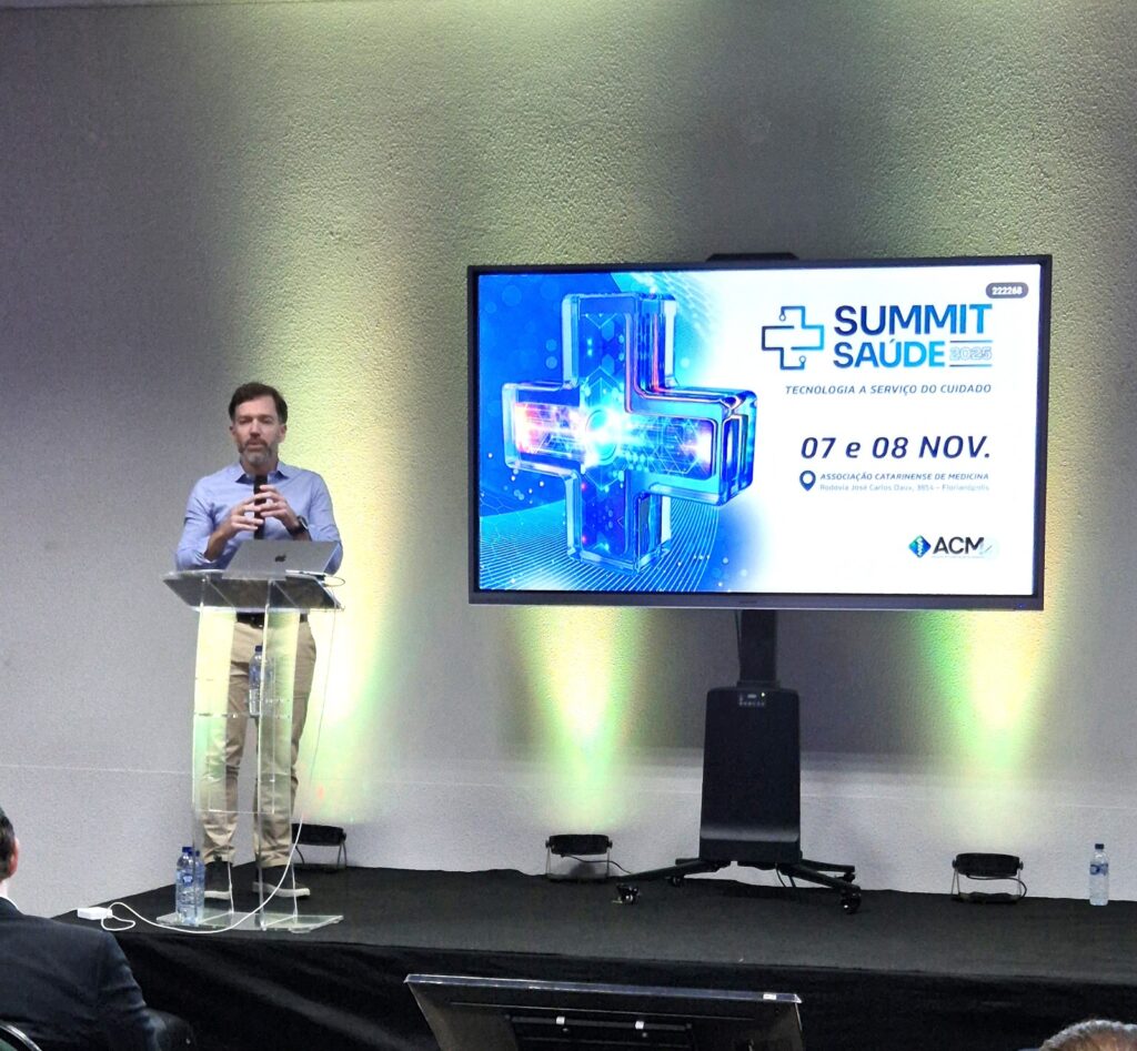 Dr. Marcello Alberton Herdt, Diretor de Inovação da ACM, ao apresentar o Summit Saúde 2025.
