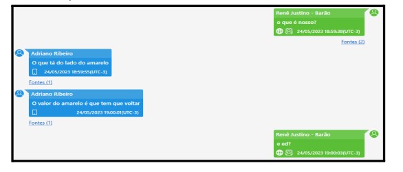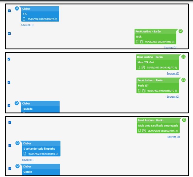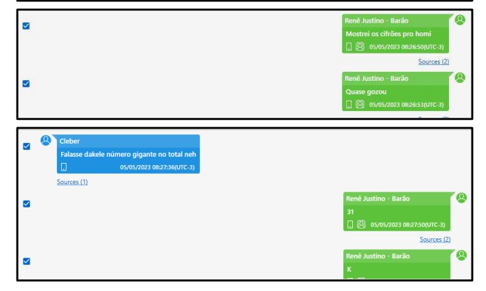 No dia seguinte, Renê continuou o diálogo sobre o assunto, enviando mensagens a Cleber dizendo que mostrou os valores para Ed e que Gui teria R$ 70 mil nos projetos mencionados e que o mesmo teria “quase g*zado quando viu os cifrões” .