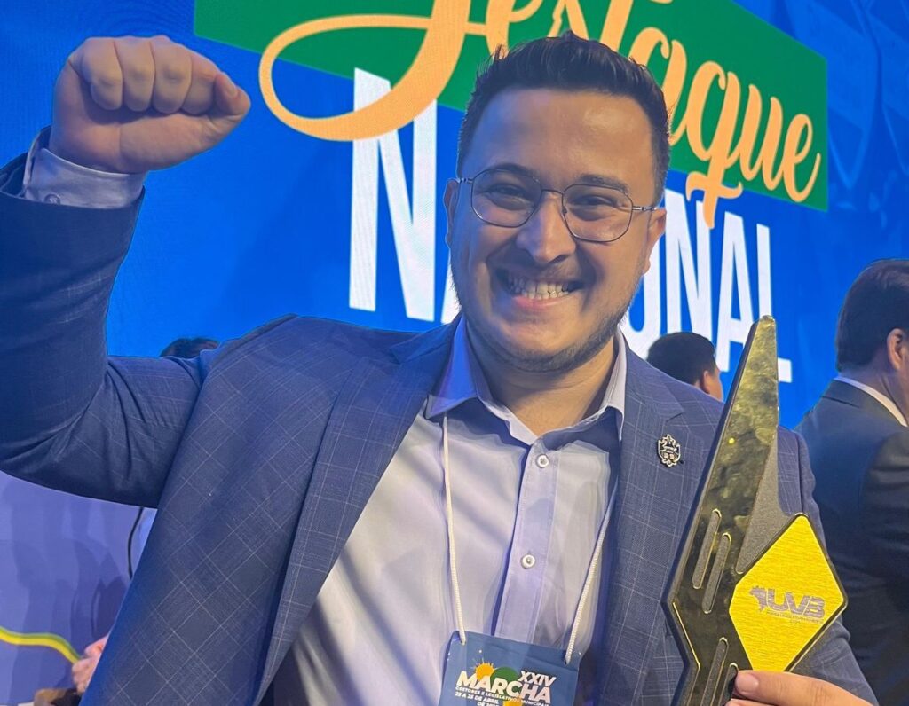 O vereador Lucas Souza (Republicanos), de 31 anos, foi homenageado nesta quinta-feira (24) durante a XXIV Marcha dos Vereadores, em Brasília, com o Prêmio de Destaque Nacional. O reconhecimento veio pelo trabalho realizado na regularização fundiária do Loteamento São Domingos, no bairro Paranaguamirim, onde foram entregues 130 matrículas de posse em parceria com o programa Lar Legal do TJ-SC.
